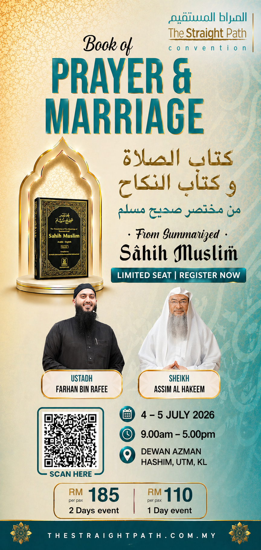 The 2026 convention focuses on Kitab as-Salah (Prayer) and Kitab an-Nikah (Marriage) from the abridged Sahih Muslim. The curriculum explores the "Important Linkage" between our vertical connection with Allah and our horizontal bond with our families. By establishing the Sunnah in both, we aim to bring Sakinah (tranquility) into our modern lives.